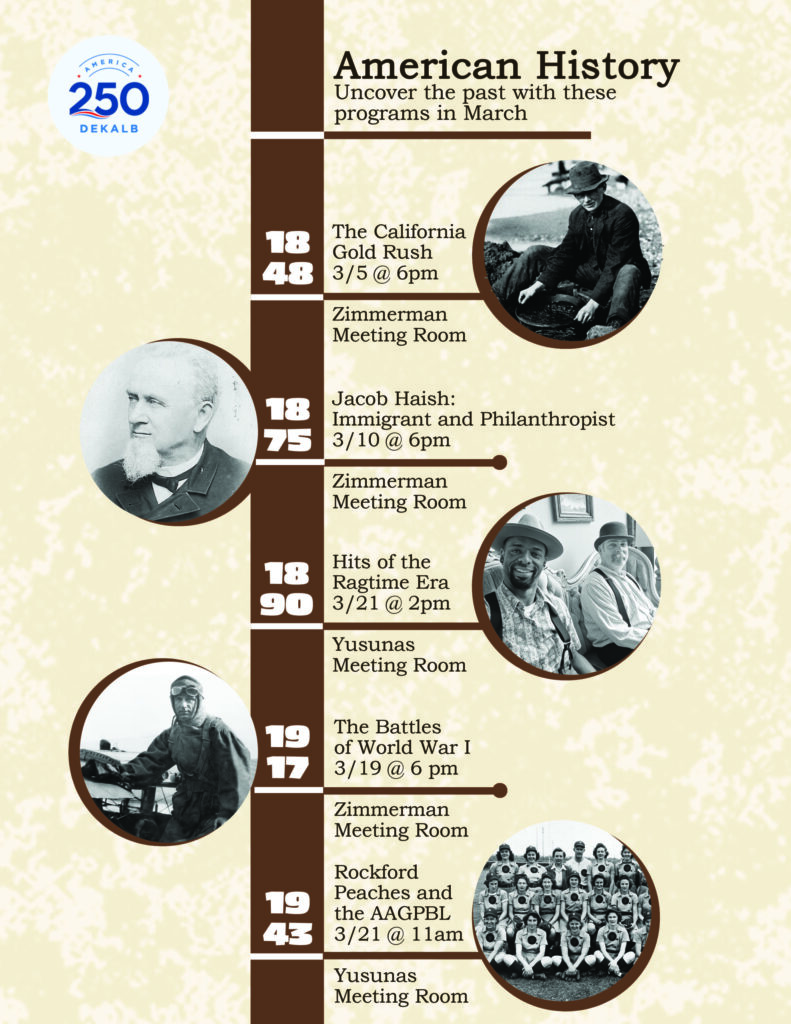 If learning about history is your jam, we invite you to attend our upcoming March programs that feature stories of American trials and triumph! These programs are part of the America 250 initiative; celebrating our nation throughout the year.