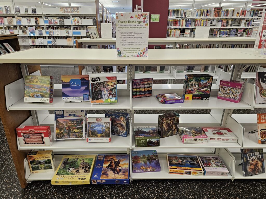 Did you know that the library has a puzzle exchange available to everyone? You don’t even need a library card!