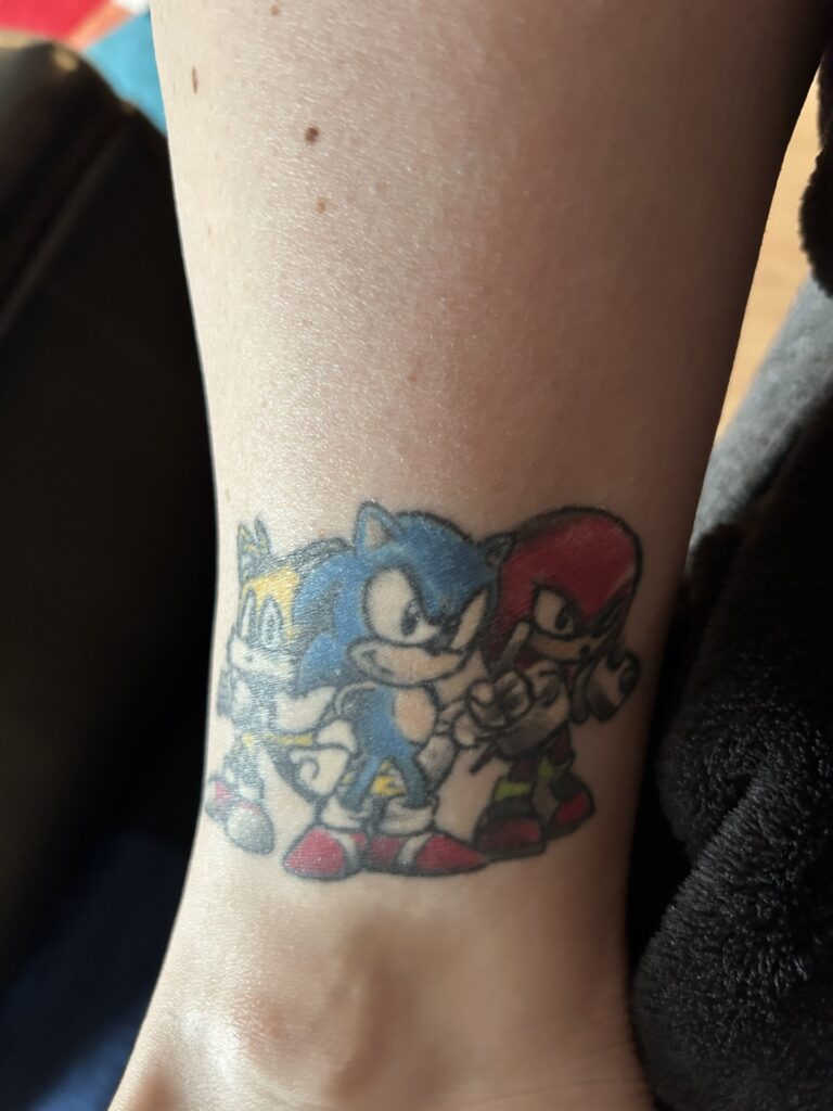 - My sister and I used to sit in front of her Sega for like six hours to beat Sonic the Hedgehog. I miss video games where you couldn’t save your progress; beating them was much more of a commitment. I’ve had all my tattoos done by Brian Fleetwood, owner of Spider Tattooz in Sycamore. He and I grew up playing video games together, too, though he was more of a Mortal Kombat fan.