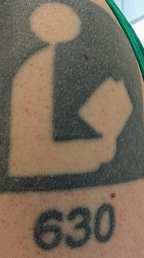 - After thinking about it for a while, I got this tattoo of a generic library logo when I lived in South Florida to celebrate my first year of working professionally in libraries. The 630 isn’t meant to be a Dewey Decimal number, it actually represents the area code of DuPage County, Illinois where I grew up and first worked in libraries. All of my tattoos have some reference to where I’m from. I’ve considered adding zip codes on each side in tribute to other communities I’ve worked in.