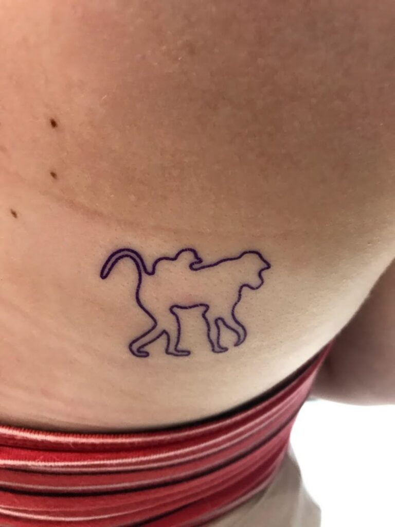 - Outline of a baboon mother carrying a juvenile. Summer 2019. Atmosphere Tattoo Schaumburg.