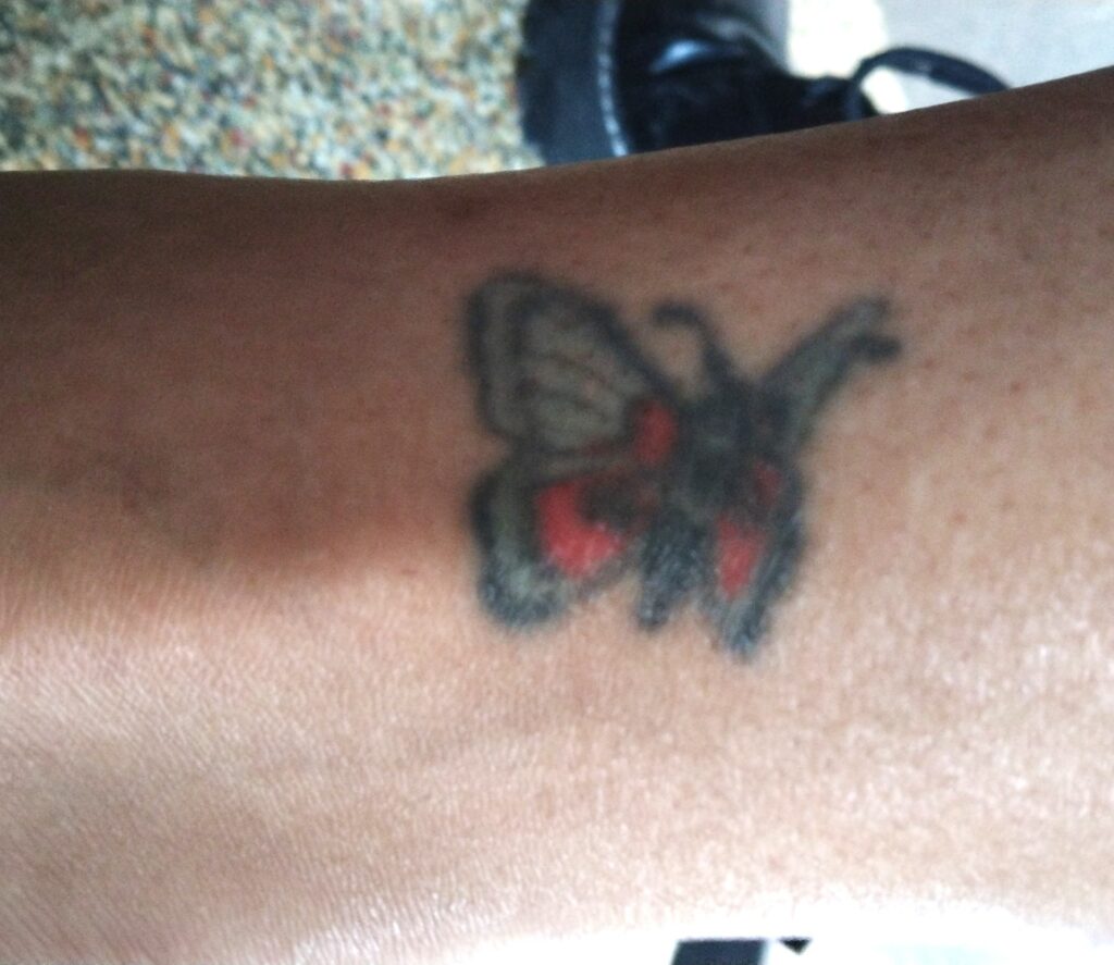 - This is my second tattoo. I got it at a local shop in Carbondale, IL during my junior year (undergrad) at SIU (2002?). I wanted something with color that would pop out. So, I chose a simple butterfly design. It cost $60.