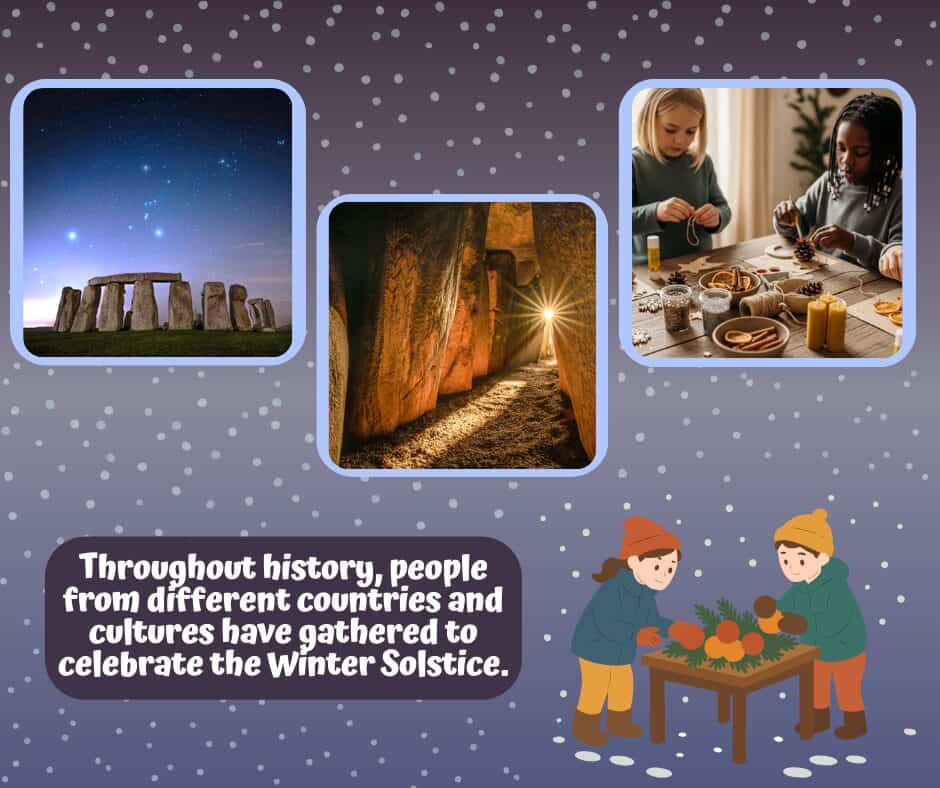 Throughout history, people from different countries and cultures have gathered to celebrate the Winter Solstice. And still do!