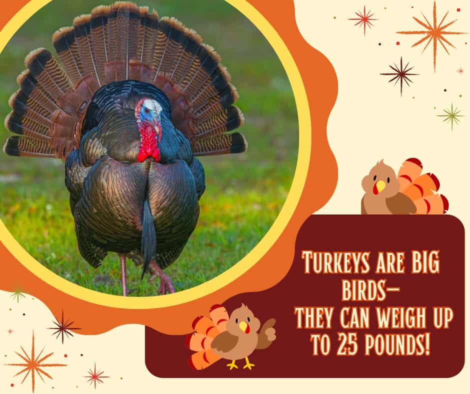 - Turkeys are BIG birds – they can weigh up to 25 pounds!